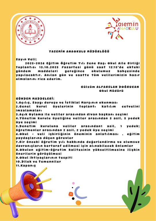 2025-2026 EĞİTİM ÖĞRETİM YILI SENE BAŞI OKUL AİLE BİERLİĞİ TOPLANTI DUYURUSU